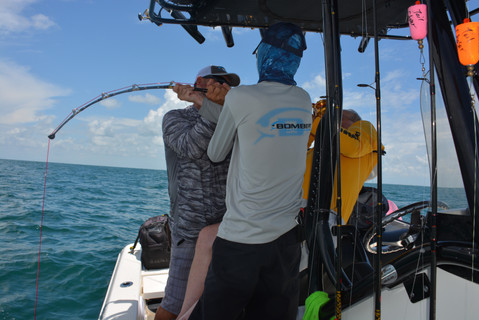 O’Neill uses live bait, typically fish in the 5-pound range, to entice goliaths. When that fish takes the bait, you usually feel a bump, bump and then WHAM! Try to stay in the boat because that fish is going to have its way with you when the fight begins. O’Neill calls the bigger fish “school buses.” Catch one; you’ll figure out why. I'm not sure it happened on the first or my second goliath grouper, but I left southwest Florida with an umbilical hernia. Make sure you have a good fishing platform and are securely in the boat because these fish can hurt you when they surge.